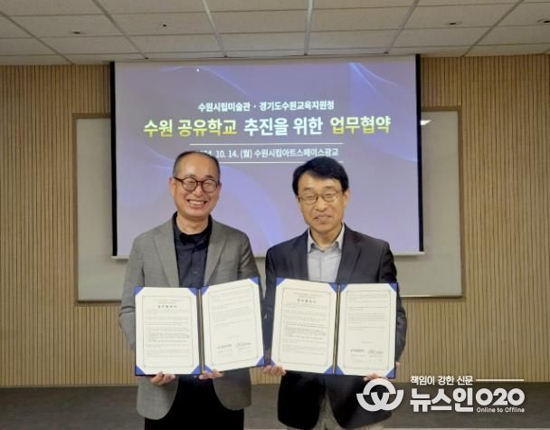 (뉴스인020 = 박용우 기자) 경기도 수원시립미술관은 경기도수원교육지원청과 수원 공유학교 추진을 위한 업무협약을 수원시립아트스페이스광교에서 10월 14일 체결했다.