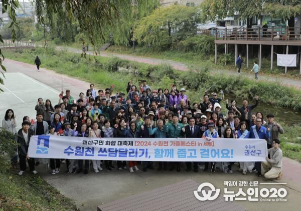 (뉴스인020 = 박용우 기자) 수원시 권선구는 16일 주민과 공무원 70여 명이 참여한 가운데 수원천 세류동 구간에서 환경정화활동 ‘쓰담달리기’를 진행했다.