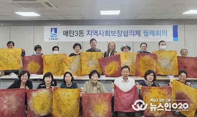 (뉴스인020 = 박용우 기자) 수원시 영통구 매탄3동 지역사회보장협의체는 지난 16일 관내 어르신 10명과 함께 천연재료로 염색하는 ‘천연염색 손수건만들기’를 진행했다.