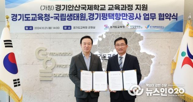경기도교육청은 이날 오후 남부청사에서 (가칭)경기안산국제학교 교육과정의 새로운 모델 개발을 위해 국립생태원, 경기평택항만공사공사와 업무협약을 체결했다. 이 자리에는 임 교육감을 비롯해 조도순 국립생태원 원장, 김석구 경기평택항만공사 사장이 함께 참석했다.
