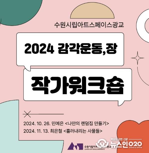 (뉴스인020 = 박용우 기자) 경기도 수원시 수원시립미술관의 수원시립아트스페이스광교는 현재 개최 중인 《감각운동,장》전시 연계 '2024 작가워크숍'을 10월 26일 그리고 11월 13일에 개최한다.