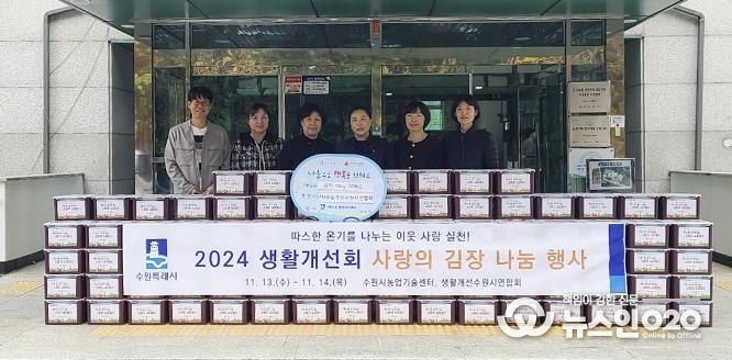 (뉴스인020 = 박용우 기자) 한국생활개선 수원시연합회는 지난 14일 저소득 어르신을 위해 사랑의 김장 김치 20박스를 매탄4동 행정복지센터에 전달했다.