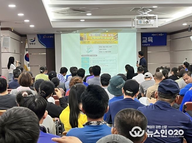 (뉴스인020 = 김성길 기자) 장흥군은 지난 15일 외국인 계절근로자 및 고용주, 농촌인력중개 농작업자를 대상으로 폭염 대비 농어업 근로자 안전관리 교육을 실시했다.