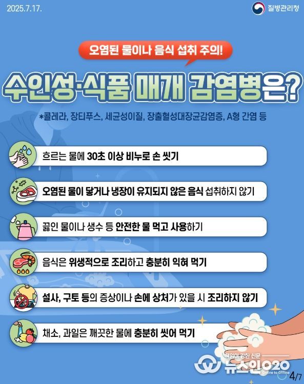 시는 감염병 예방을 위해 끓인 물이나 안전한 음식을 섭취하고, 흐르는 물에 비누로 손을 씻는 등 위생 수칙을 철저히 지켜줄 것을 당부했다.