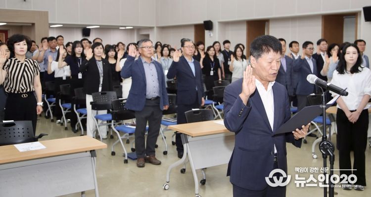 서약식에는 교육감을 비롯해 국장급 간부와 본청 전 직원이 참여했으며, 문태홍 정책국장이 대표로 서약서를 낭독했다.