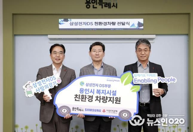 (뉴스인020 = 김성길 기자) 용인특례시는 9일 오후 시청 하늘광장에서 삼성전자 DS부문과 경기사회복지공동모금회와 함께 ‘친환경 차량 지원사업 전달식’을 개최했다고 10일 밝혔다.