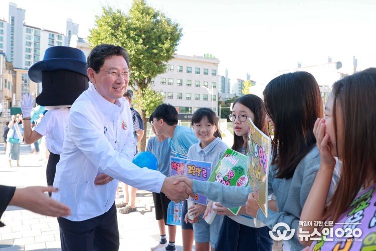 (뉴스인020 = 김성길 기자) 이상일 용인특례시장이 11일 기흥구 마북동에 있는 구성초등학교에서 학교폭력 예방 캠페인을 벌였다.