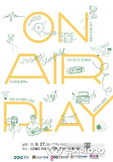 (뉴스인020 = 김성길 기자) 안성미디어센터가 시민 라디오 공개방송 'ON AIR PLAY'를 9월 27일 13시부터 스타필드 안성 1층 고메스트리트 내 특별무대에서 개최한다고 밝혔다.