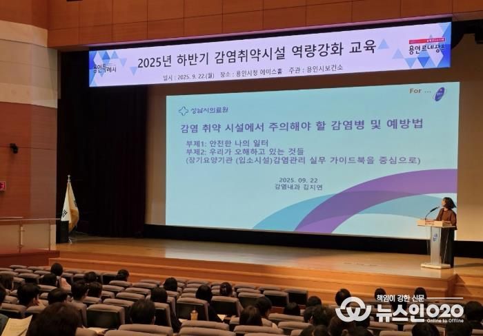 (뉴스인020 = 김성길 기자) 용인특례시는 지난 22일 시청 3층 에이스홀에서 지역 내 감염취약시설 종사자 100여 명을 대상으로 ‘감염병 대응 역량 강화 교육’을 했다고 23일 밝혔다.
