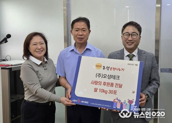 (뉴스인020 = 김성길 기자) ㈜오성테크가 지난 9월 22일 민족 대명절 추석을 맞아 정왕3동 지역사회보장협의체에 쌀 10kg 30포를 전달했다. 이번 후원은 정왕3동 내 취약계층 가정에 따뜻한 명절을 선물하기 위해 마련됐다.