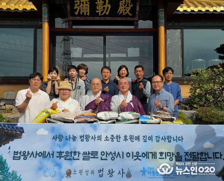 (뉴스인020 = 김성길 기자) 안성시 보개면에 위치한 법왕사는 2025년 9월 22일(월) 쌀 1,080kg(10kg 108포대)를 안성시아동보호전문기관에 기탁했다.