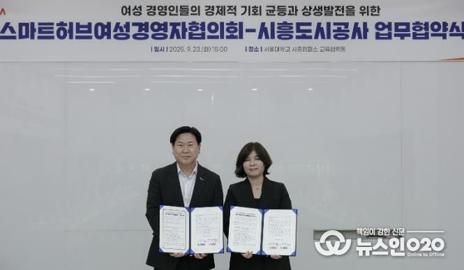 (뉴스인020 = 김성길 기자) 시흥도시공사는 지난 23일 관내 여성 경영인 협력 공동체인 ‘스마트허브여성경영자협의회’와 경제적 기회균등과 상생발전을 도모하기 위한 업무협약을 체결했다고 밝혔다.