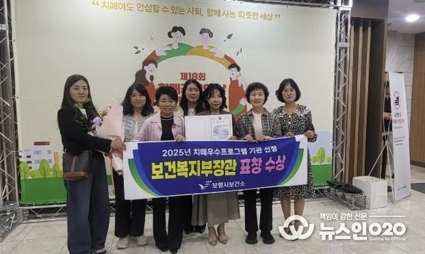 (뉴스인020 = 김성길 기자) 보령시보건소는 지난 25일 충남 아산시 평생학습관에서 열린 제18회 ‘치매 극복의 날’ 기념식에서 치매 우수프로그램 기관으로 선정되어 보건복지부 장관 표창을 수상했다고 밝혔다.