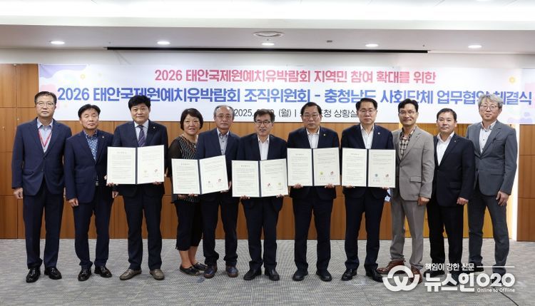 (뉴스인020 = 김성길 기자) 2026 태안국제원예치유박람회 조직위원회는 29일 도청 상황실에서 도내 4개 사회단체와 박람회 성공 개최를 위한 협력을 다짐하는 업무협약을 체결했다.