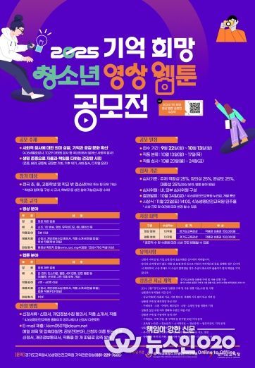 (뉴스인020 = 김성길 기자) 경기도교육청4.16생명안전교육원이 ‘2025 기억 희망 청소년 영상‧웹툰 공모전’을 개최한다.