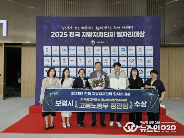 (뉴스인020 = 김성길 기자) 보령시는 9월 30일 청주오스코 그랜드볼룸에서 개최된 ‘전국 지방자치단체 일자리대상’ 시상식에서 우수상을 수상했다고 밝혔다. 일자리대상은 중앙정부가 매년 전년도 일자리 추진성과를 정량·정성으로 종합 평가해 시상하는 제도로, 지역 맞춤형 고용 성과와 확산 가능성을 중점적으로 평가한다.