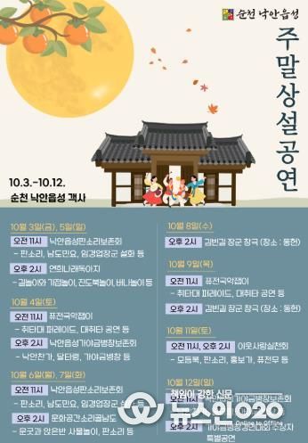 (뉴스인020 = 김성길 기자) 순천시는 순천 낙안읍성에서 '주말 상설공연'과 '김빈길 장군 창극' 공연을 오는 10월 3일부터 12일까지 선보인다고 밝혔다.