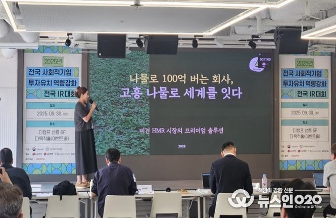 (뉴스인020 = 김성길 기자) 고용노동부와 한국사회적기업진흥원은 9월 30일 디캠프 선릉 다목적홀에서 ‘2025년 사회적기업 투자유치 대회’를 성황리에 개최했다고 밝혔다.