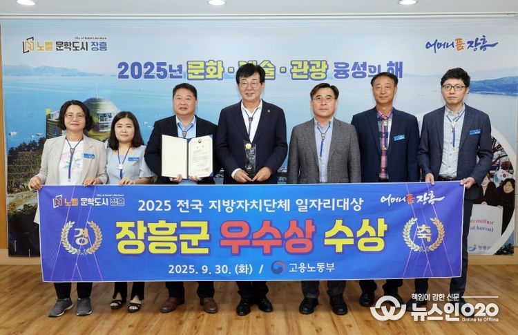 (뉴스인020 = 김성길 기자) 장흥군이 지난 30일 충북 청주 오스코에서 열린 고용노동부 주관 ‘2025 전국지방자치단체 일자리대상’에서 공시제 분야 우수상을 수상했다.