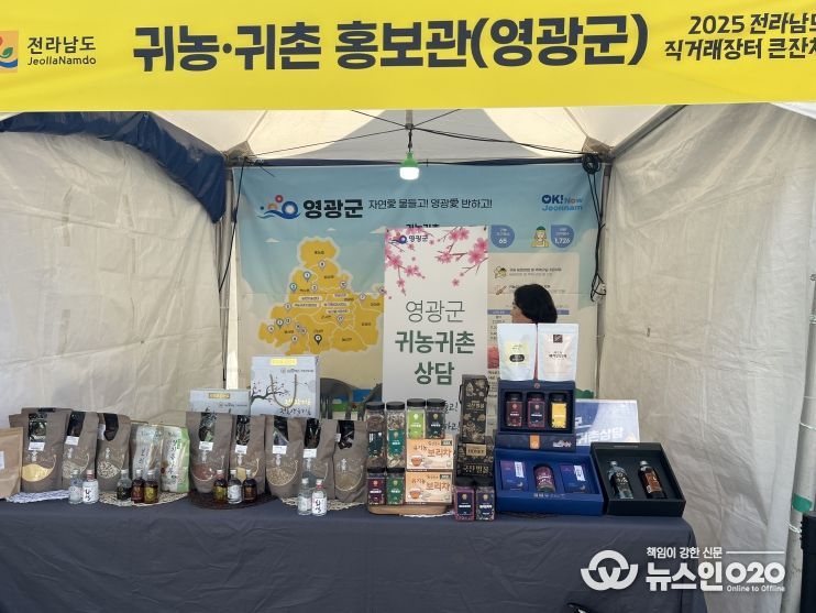 (뉴스인020 = 김성길 기자) 영광군은 ‘2025 전라남도 직거래장터 큰잔치’ 현장에서 도시민을 대상으로 귀농·귀촌 홍보부스를 운영했다. 부스에서는 귀농·귀촌 준비에 필요한 제도와 절차, 교육 과정, 주거·생활 등 정주 정보를 중심으로 안내했다.