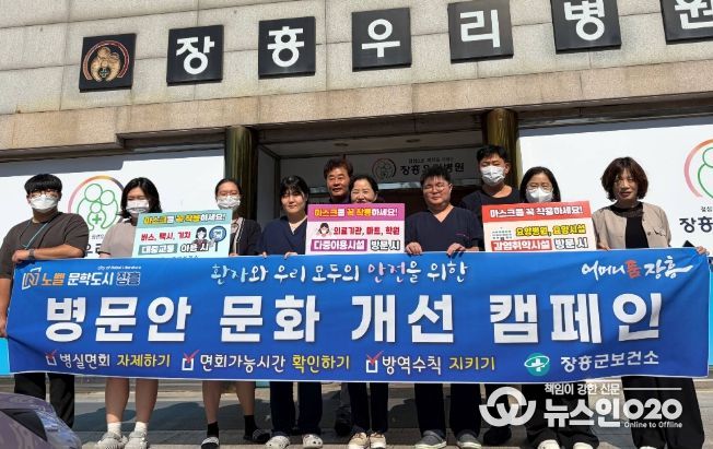 (뉴스인020 = 김성길 기자) 장흥군은 추석 명절을 앞두고 연휴 기간 중 의료기관이나 요양 시설에 문병객이 많을 것으로 예상됨에 따라, 불필요한 병문안을 자제하는 분위기를 조성하고자 ‘병문안 문화 개선 캠페인’을 실시했다.