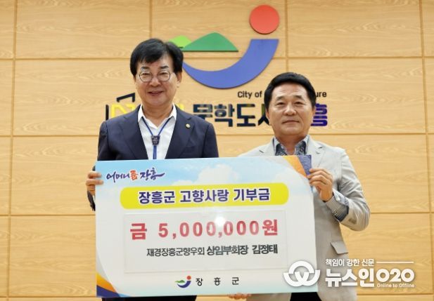 (뉴스인020 = 김성길 기자) 장흥군은 지난 1일 재경장흥군향우회 김정태 상임부회장이 장흥군청을 방문해 고향사랑기부금 500만 원을 전달했다고 밝혔다.