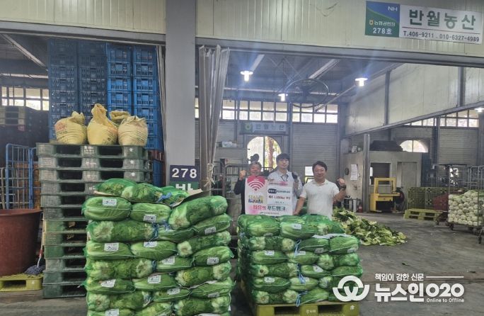 (뉴스인020 = 김성길 기자) 안산시 농수산물도매시장은 지난 2일 도매시장 내 중도매인인 반월농산(대표 노영현)으로부터 추석 명절을 맞이해 배추 1,800kg을 기탁받았다고 3일 밝혔다.