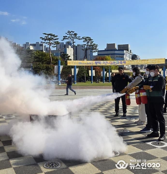 이날 훈련에는 평택시청 상주 직원과 비전119안전센터 소방대원 등 200여 명이 참여했으며, ▲신속한 화재 통보 ▲청사 내 대피 유도 ▲소화전을 이용한 초기 화재 진화 ▲소방차 진출입로 확보 및 차량 통제 ▲모의화재 소화기 진압훈련 등 실제 상황을 가정한 프로그램으로 구성됐다.