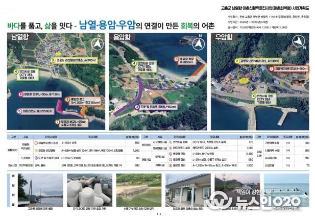 (뉴스인020 = 김성길 기자) 고흥군은 해양수산부가 주관한 ‘2026년 어촌신활력증진 어촌 회복형’ 공모사업에 영남면 남열항 지구가 최종 선정돼 100억 원의 사업비를 확보했다고 밝혔다.