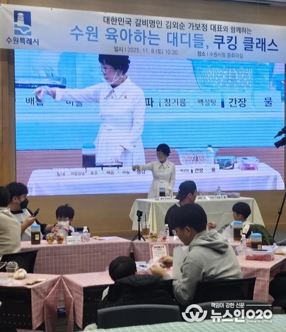 (뉴스인020 = 기자) 수원특례시는 8일 시청 중회의실에서 ‘수원 육아하는 대디들(수육대)’ 다섯 번째 오프라인 활동인 ‘쿠킹클래스 with 가보정’을 열었다. 이번 체험에는 수육대 참여 아빠와 자녀 50가족, 120여 명이 함께했다.