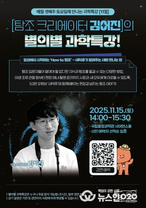 국립중앙과학관 권석민 관장은 “이번 강연은 과학을 교과서 너머의 세계로 확장하는 흥미로운 기회가 될 것”이라며 “학생들에게는 주변 생태계를 감각적으로 경험하는 통로, 학부모에게는 일상에서 자연을 함께 관찰하며 소통할 수 있는 기회가 될 것”이라고 말했다.