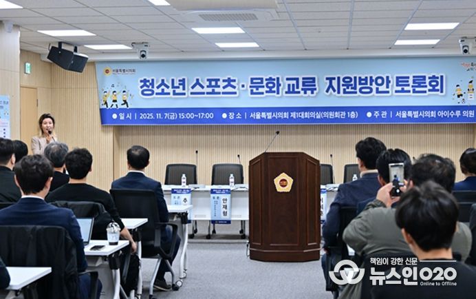(뉴스인020 = 김성길 기자) 청소년이 뛰어놀 운동장은 줄고, 서로의 문화를 배우는 무대가 더 필요해지는 시대다. 이에 서울특별시의회 아이수루 문화체육관광위원회 부위원장(더불어민주당·비례)이 7일 오후 3시, 서울시의회 의원별관 제1대회의실에서 ‘청소년 스포츠 문화교류 지원 방안 토론회’를 개최했다.