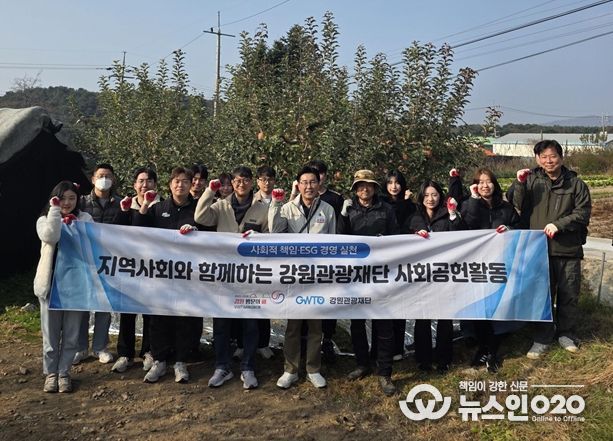 (뉴스인020 = 김성길 기자) 강원관광재단은 지역사회 상생 발전을 위해 11월 13일, 춘천시 신북읍 소재 사과 농가를 방문하여 농촌일손돕기 활동을 펼쳤다.