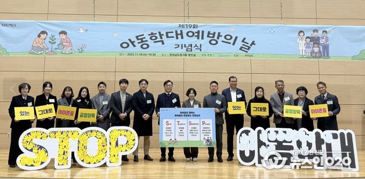 (뉴스인020 = 김성길 기자) 전라남도는 19일 도청 왕인실에서 전남도아동전문보호기관이 개최한 ‘제19회 아동학대 예방의 날 기념식’에 참여해 관계기관들과 아동학대 없는 전남을 만들기 위한 뜻을 모았다고 밝혔다.