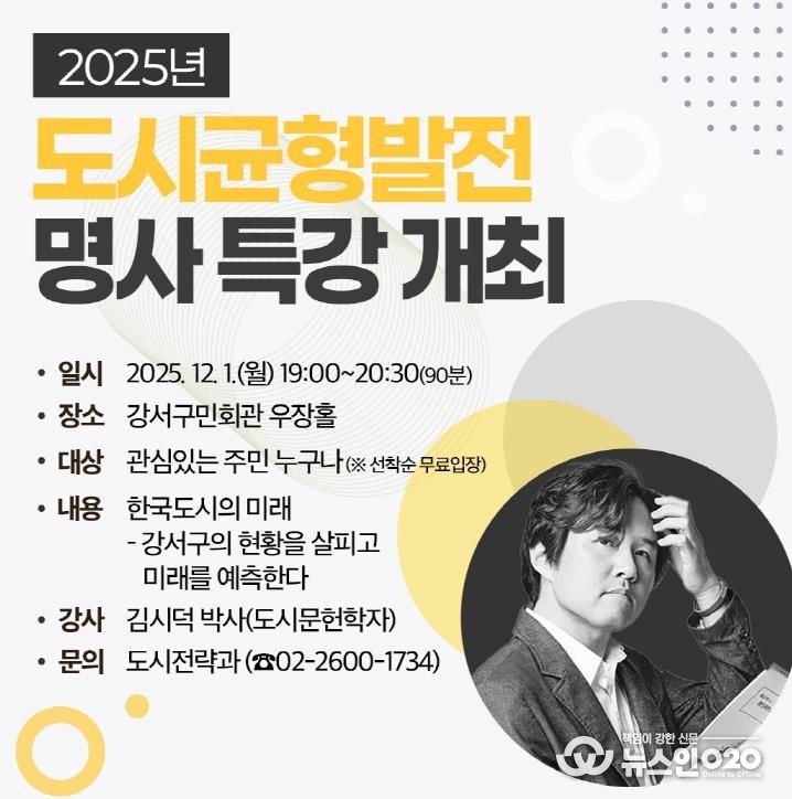이번 특강은 12월 1일 오후 7시부터 8시 30분까지 강서구민회관(우장산로 66) 우장홀에서 열린다. 관심 있는 주민 누구나 선착순으로 무료 참여할 수 있다.
