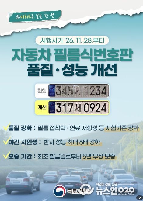 (뉴스인020 = 김나현 기자) 자동차 필름식 번호판 품질·성능 개선