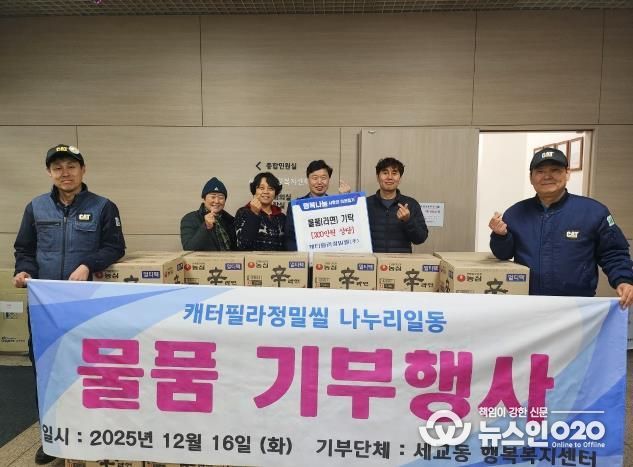 최원종 세교동장은 “매년 잊지 않고 어려운 이웃을 위해 기부하신 ㈜캐터필라정밀씰 ‘나누리’봉사단체 관계자분들에게 깊이 감사드리며, 소중한 마음이 꼭 필요한 이웃들에게 잘 전달되도록 하겠다”고 감사 인사를 전했다.