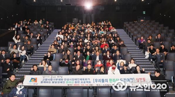 (뉴스인020 = 김성길 기자) 안성시 장애인체육회는 발달장애인과 비장애인이 함께 한라산 정상에 오르는 도전 과정을 담은 ‘한라산 등반 다큐멘터리 상영회’를 성공적으로 개최했다고 밝혔다.