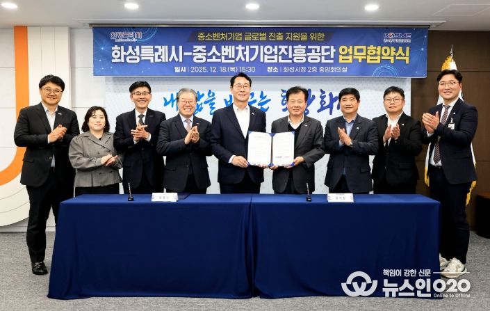 (뉴스인020 = 김성길 기자) 화성특례시가 지난 18일 중소벤처기업진흥공단과 관내 중소기업의 글로벌 진출 지원을 위한 ‘수출물류지원사업 업무협약’을 체결했다.