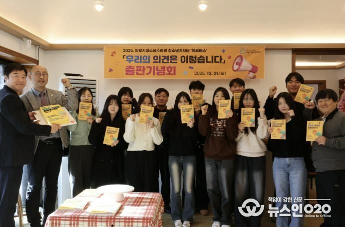 (뉴스인020 = 김성길 기자) 의왕시청소년재단 산하 의왕시청소년수련관에서 운영하는 청소년기자단 ‘헤르메스’가 12월 21일, 한 해 동안 작성한 기사를 담은 도서 '우리의 의견은 이렇습니다'의 출판 기념 행사를 성황리에 마무리했다.