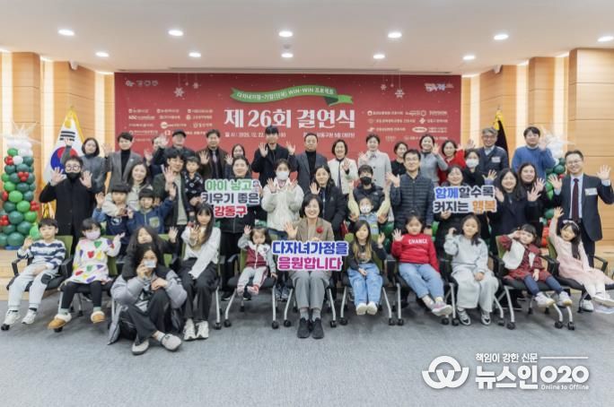 (뉴스인020 = 김성길 기자) 서울 강동구는 지난 12월 22일, 강동구청 대강당에서 ‘다자녀 가정-기업(단체) WIN-WIN 프로젝트’ 제26회 결연식을 개최했다고 24일 밝혔다.