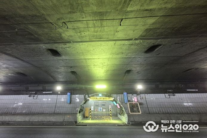 시는 ‘구룡터널’ 내 기존 위치표지 46개소를 축광식 위치표지로 교체했다. 이번 축광식 위치표지 설치로 피난연결통로가 없는 노후 터널에서도 비상시 안전한 대피에 큰 도움이 될 것으로 기대된다.