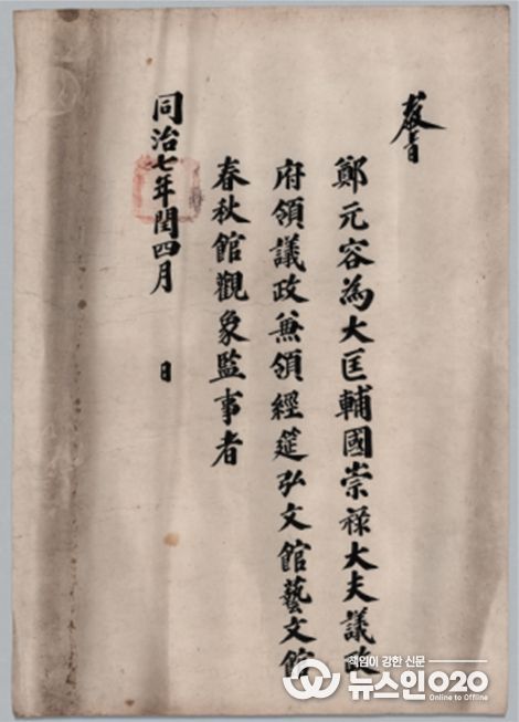 (뉴스인020 = 김성길 기자) 서울역사박물관은 한양의 회현동 일대에 오랫동안 거주하여 ‘회동정씨(會洞鄭氏)’ 라고도 불린 동래정씨 문익공파 문중(종손 정상훈)으로부터 조선시대 가문의 역사와 생활상을 보여주는 일괄 유물 1,413건 1,863점을 기증받았다고 밝혔다.