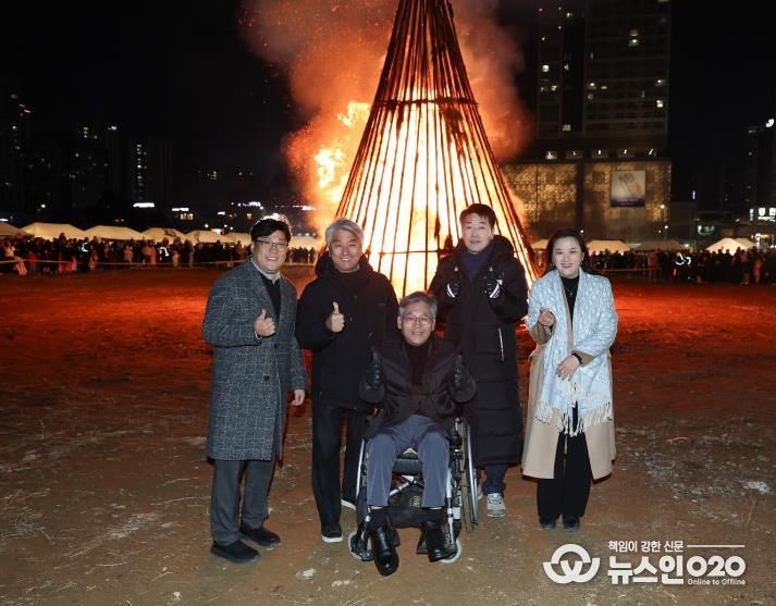 이후 파이어 퍼포먼스와 함께 달집터로 이동해 시장의 점화를 시작으로 사구(四區) 통합 달집태우기와 강강술래가 진행됐다. 거대한 달집이 타오르는 장관 속에서 시민들은 각자의 소망을 담은 소원지를 하늘로 띄우며 한 해의 안녕과 번영을 기원했다.