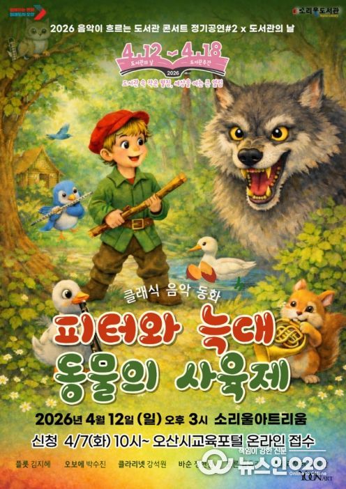 (뉴스인020 = 김성길 기자) 오산시 소리울도서관은 오는 4월 12일 오후 3시 소리울아트리움에서 ‘2026 도서관의 날’을 기념해 온 가족이 클래식의 매력을 즐길 수 있는 '음악이 흐르는 도서관 콘서트'를 개최한다.