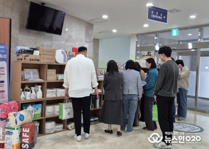 전시장에는 코팅장갑, 방향제, 티슈, 위생랩, 복사용지 등 생활·사무용품이 전시됐으며, 예산군 장애인직업재활시설인 예산군장애인보호작업장에서 생산한 방향제와 디퓨저도 함께 선보여 의미를 더했다.