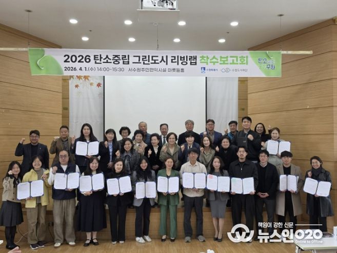 (뉴스인020 = 김성길 기자) 수원특례시와 수원도시재단이 1일 서수원주민편익시설에서 ‘2026년 탄소중립 그린도시 리빙랩 착수보고회’를 열고, 탄소중립 그린도시 리빙랩 사업의 추진 방향을 알렸다.