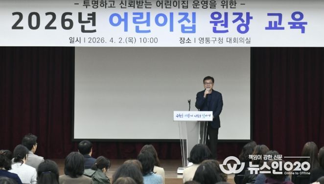 (뉴스인020 = 김성길 기자) 수원특례시 영통구는 지난 2일 218개소 어린이집 원장을 대상으로 양질의 보육서비스 제공을 위한 건강한 리더십 마인드 향상 교육을 실시했다.