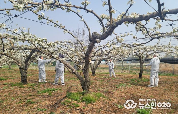 배 농가를 대상으로는 저온피해 경감기술과 함께 인공수분에 대한 꽃가루 자가생산요령 및 인공수분 방법 등 기술지원을 병행한다.