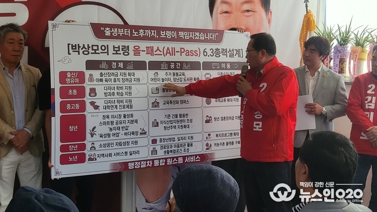 ▲박 예비후보의 대표 공약인 ‘보령 올-패스(All-Pass) 6·3 총력설계’ 발표를 하고 있는모습